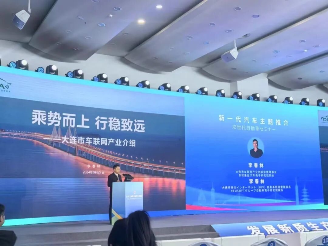 2024年9月,第五届中国辽宁国际投资贸易洽谈会辽宁—日本经贸合作对接活动在大连世博广场启幕。在对接活动重点产业主题推介环节,东软集团汽车电子研究院院长、车联网分会理事长李春林向来连日企介绍了大连市车联网相关业务发展情况,充分利用辽洽会的资源、影响力和“溢出效应”,向日本经济组织、研究机构、行业协会、日企代表等展示大连市车联网产业的发展成果及合作优势。