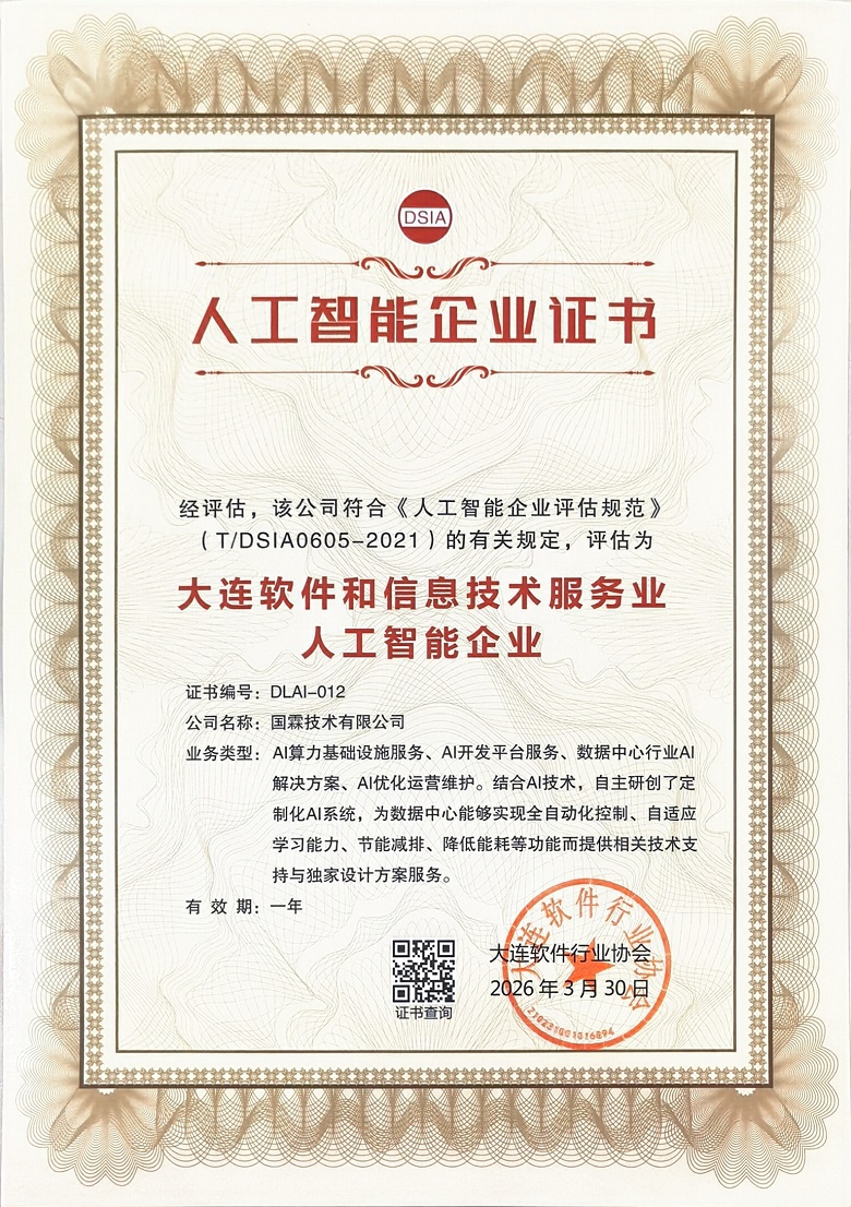 大连软件行业协会根据《人工智能企业评估规范TDSIA/0605-2021标准》,对企业开展了符合性评估。