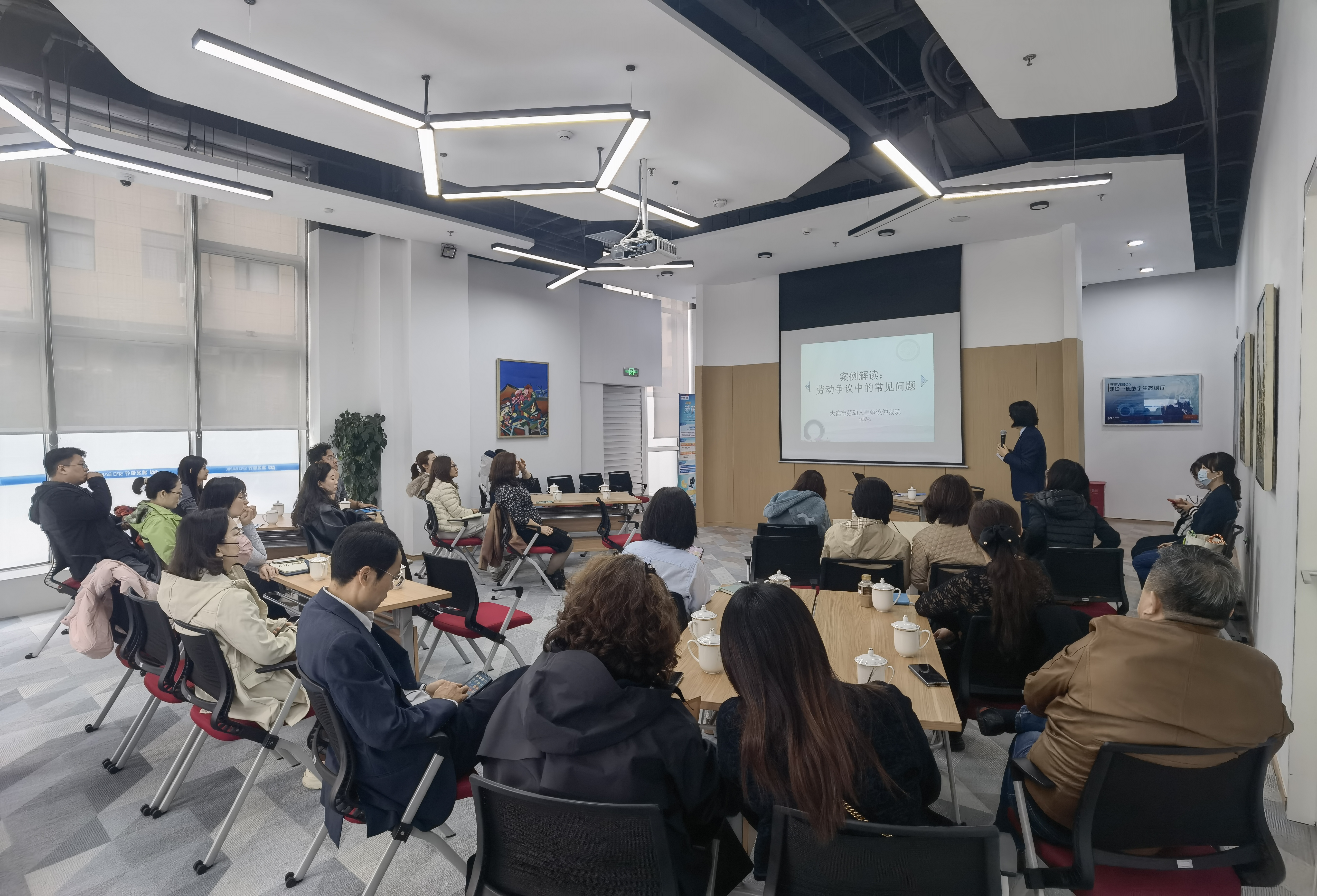 2025年11月6日,大连软件行业协会联合浦发银行七贤岭支行共同举办企业用工合规管理及高频问题争议解决交流会。本次会议由大连市劳动保障维权中心全程指导,20余家会员单位代表参会。